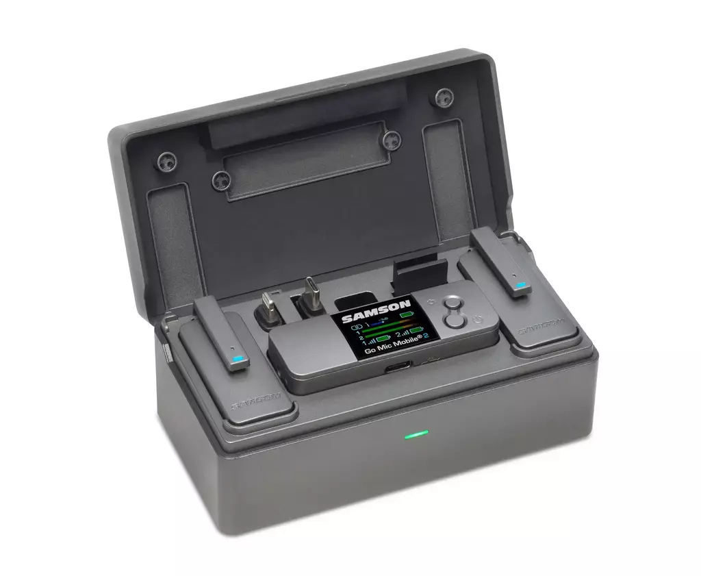 Mejora fácilmente tus producciones de video móvil con el Samson Go Mic Mobile 2. Diseñado pensando en los creadores de video móvil, este sistema inalámbrico digital de doble canal facilita la grabación de audio sin sacrificar la calidad del sonido. El receptor es plug-and-play con la mayoría de dispositivos iOS/Android, cámaras y computadoras mediante los adaptadores USB-C y Lightning, o la salida analógica de 3.5 mm. Los discretos microtransmisores de clip con micrófonos integrados ofrecen un alcance de 30 metros y 5 horas de duración de la batería fuera del estuche de carga. El Go Mic Mobile 2 garantiza un audio nítido y de alta calidad para prácticamente cualquier producción de video, sin ser visto y sin complicaciones.
